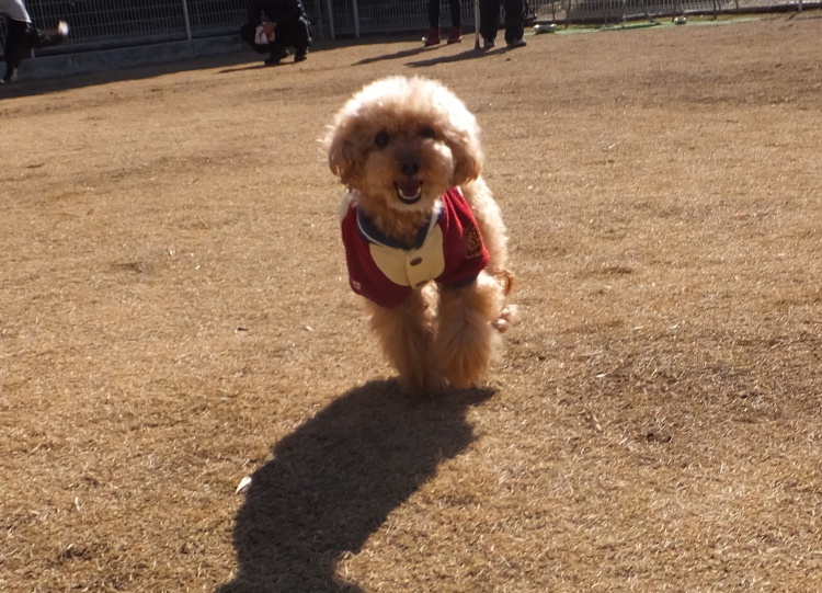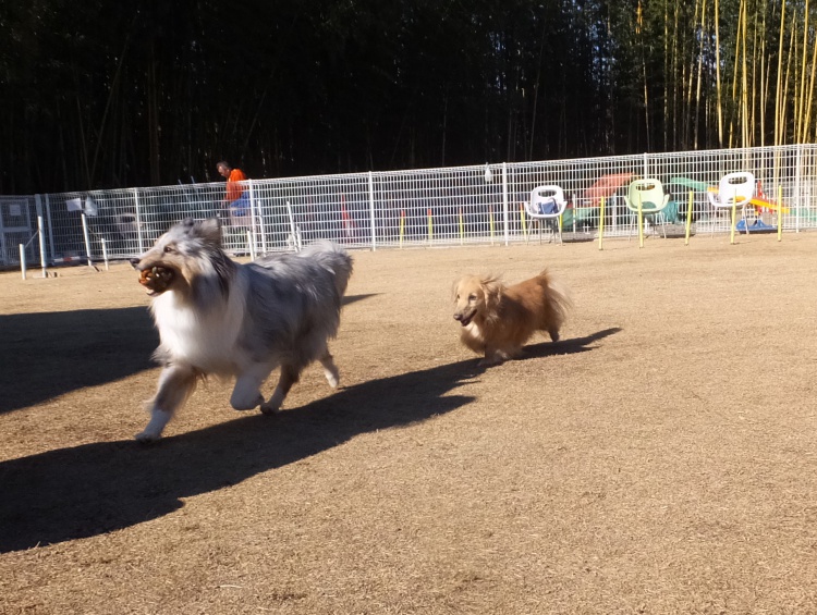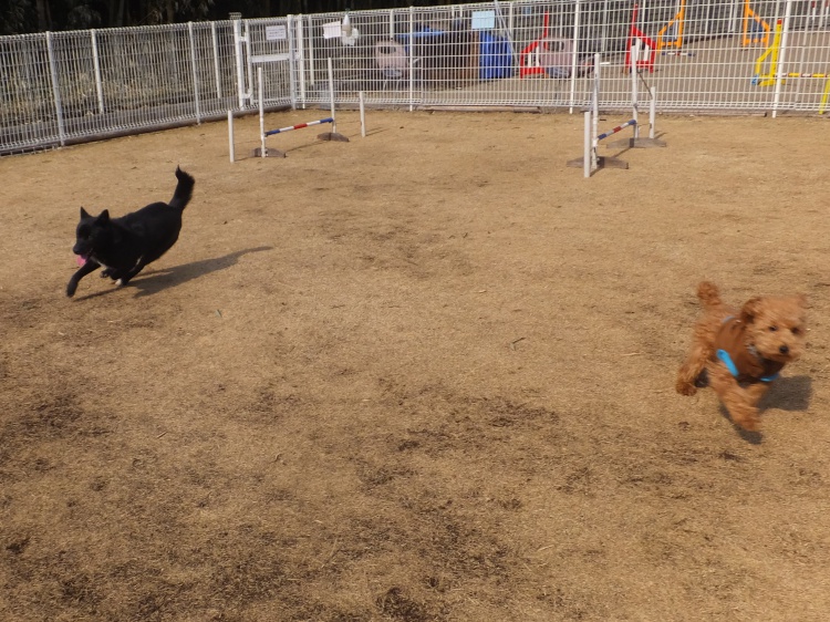 Sプードルのエリーちゃん、ディップちゃんは芝のフィールドでガンガン走りました^^