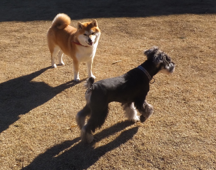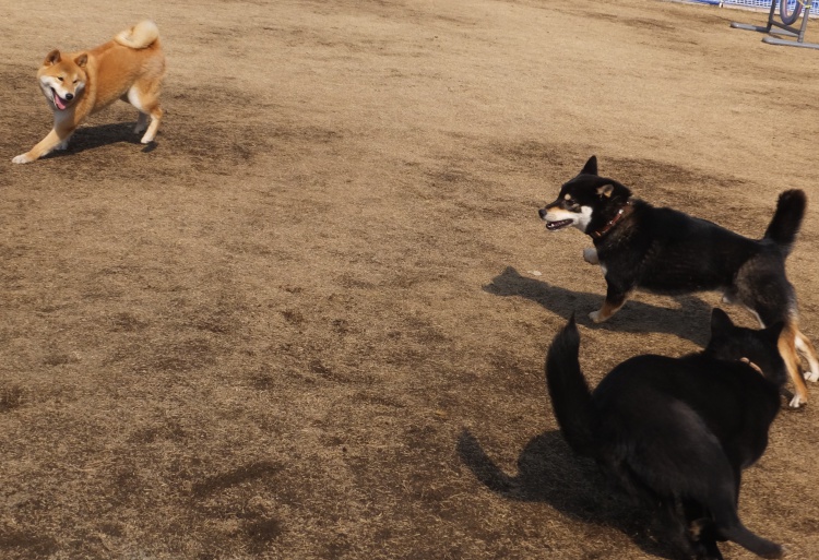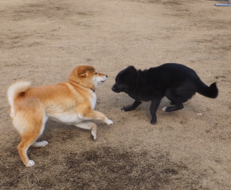 お勉強が終わった藍ちゃんも一緒に遊びました。日本犬同士の遊びは激しい(@@;