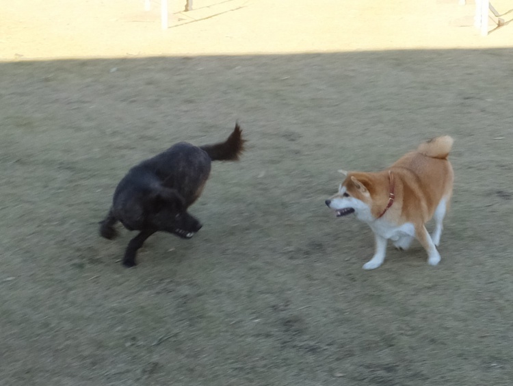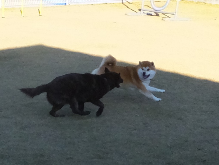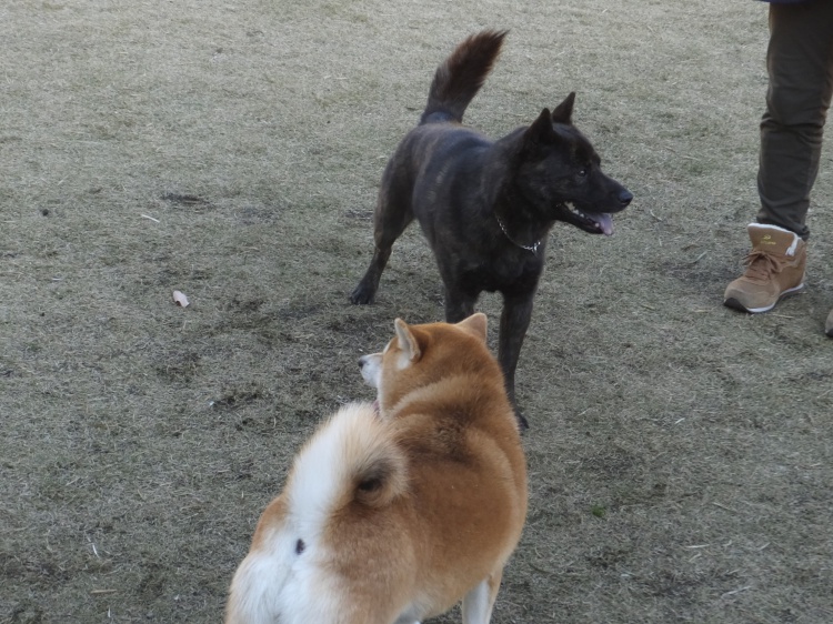甲斐犬のサクラちゃんとキャバリヤのあられちゃん、仲よくできました^^