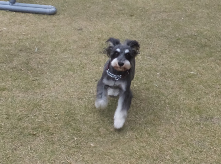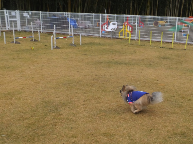 お勉強が終わってから芝のフィールドで遊びましたが・・・ママがフィールドを出ると・・・お座りで待っています^^
