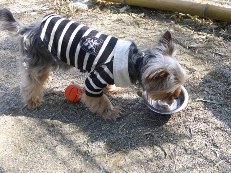まだ5ヶ月のパピーでオモチャ大好き、お口にはボールをくわえてママが呼んでも降りてきません。オヤツを見せると・・・・降りました。