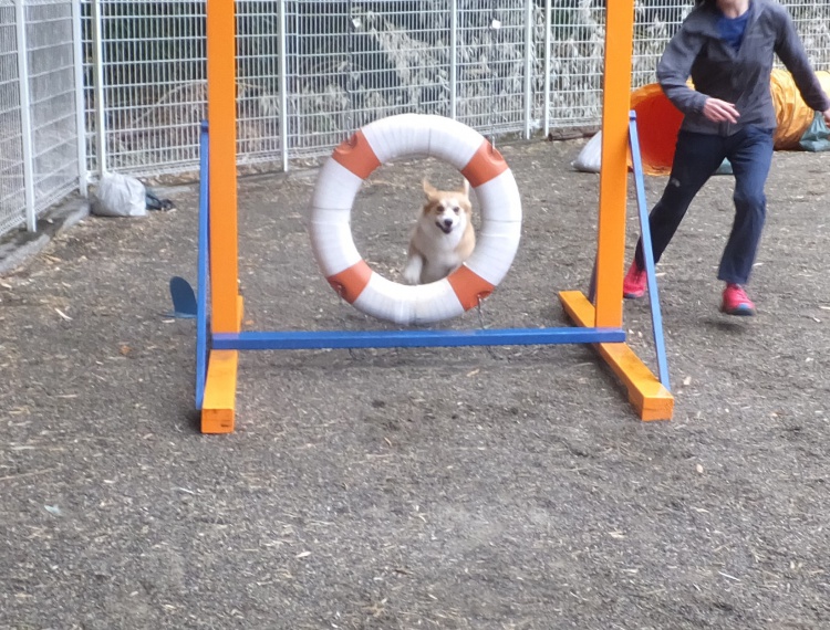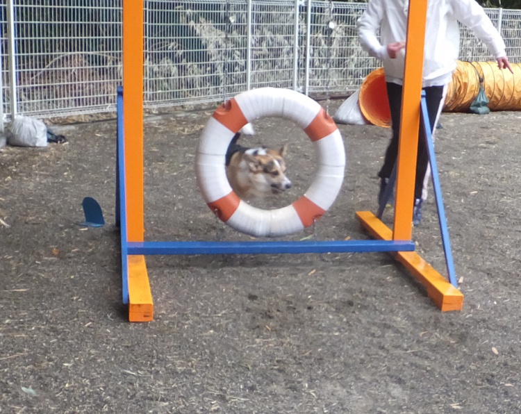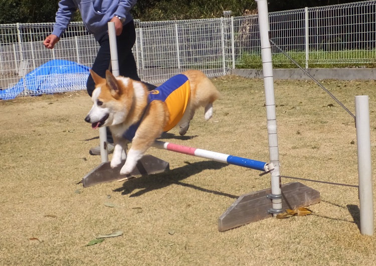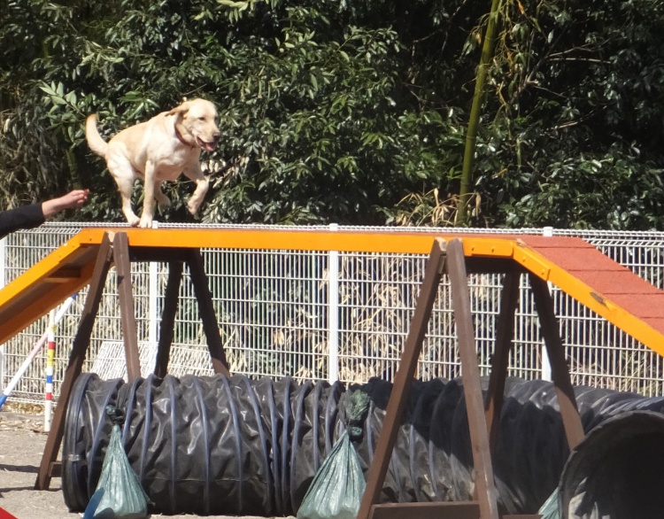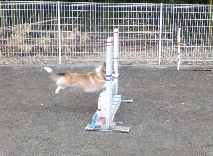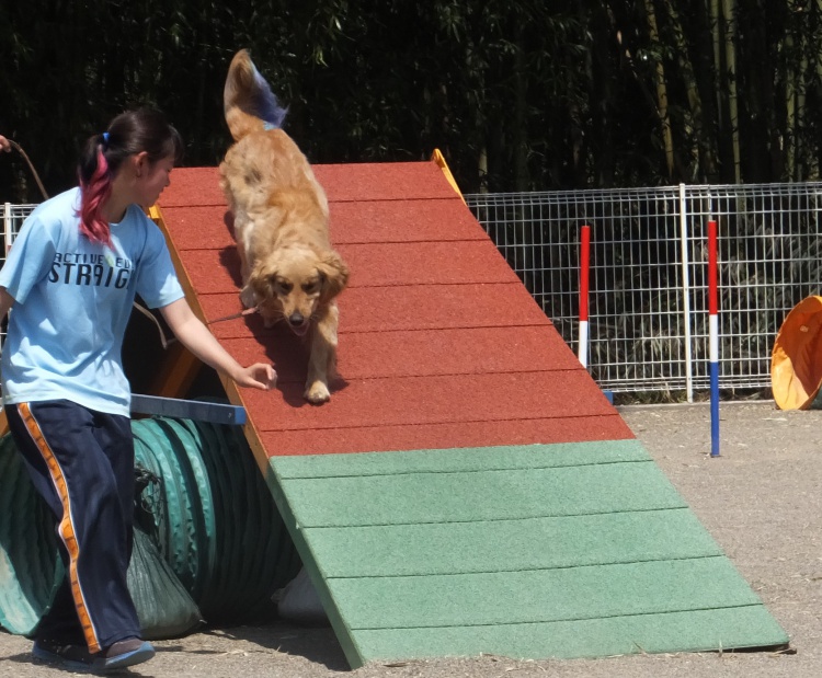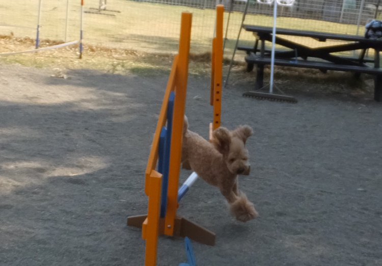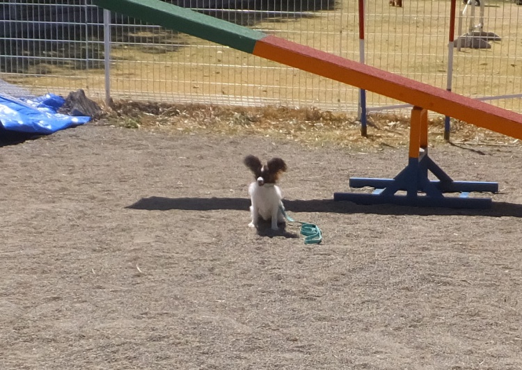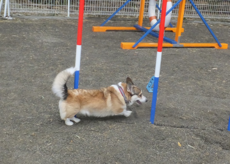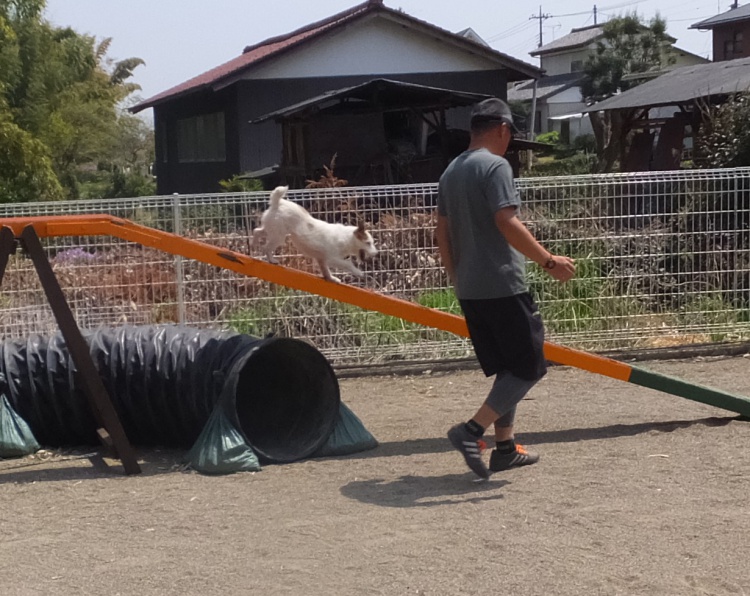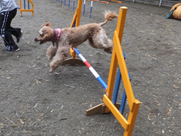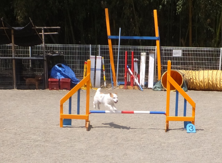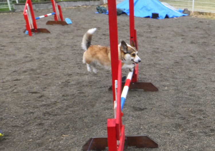 雨の中、ワンコは元気にアジリティーの練習をしました。