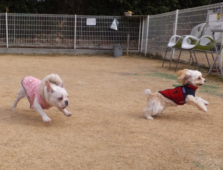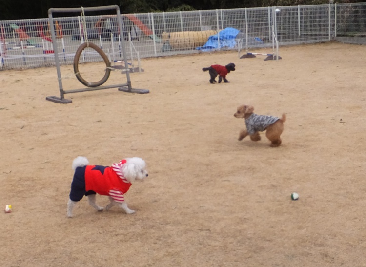ワンコ達も暖かくして元気に遊びました。