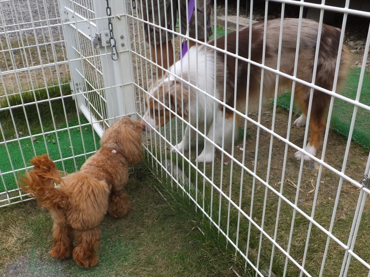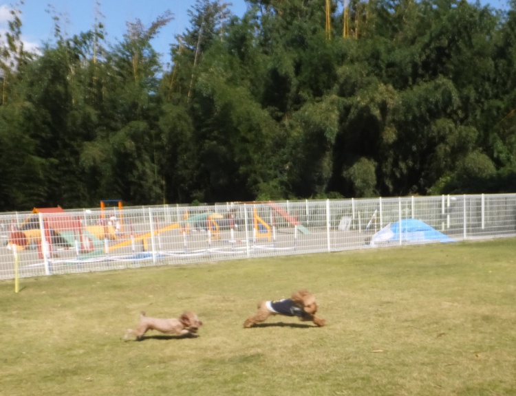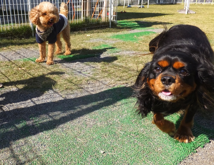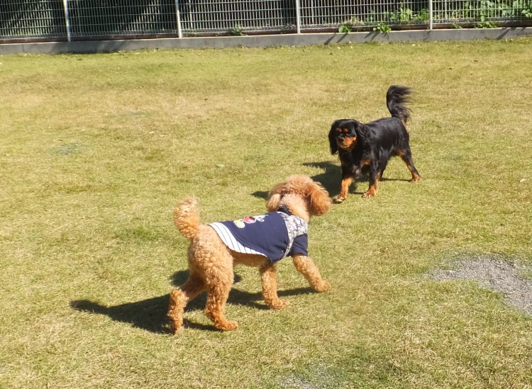 トイプードルのクッキーちゃんナナちゃんファミリーとチョコちゃんキャバリヤのキング君ファミリーで仲よく遊びました(^0^)/