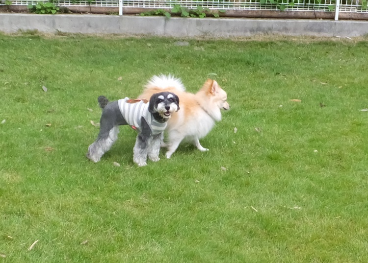 今日は曇り空でしたが涼しくてワンコ達には快適^^