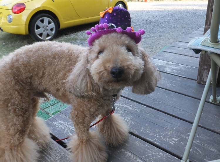 ウッドデッキにはハロウィンコスプレ帽子が置いてあります^^被ってみてください。