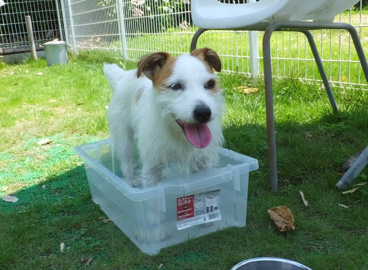 プール持参のチャッピーちゃん^^クールダウンしながら遊びました。