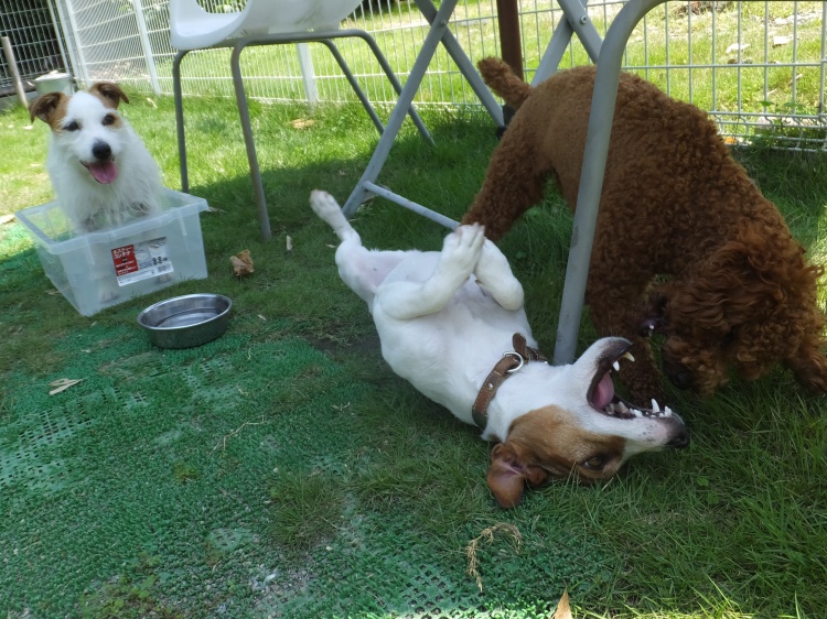 午前中に遊びに来たワンコ達、プール持参です(^^)
