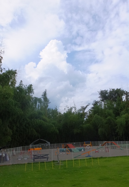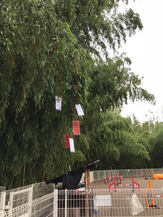 ドッグランの周囲の竹林は雨の水を含んで垂れ下がっていましたので短冊をつけてみました^^