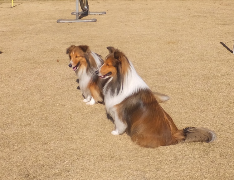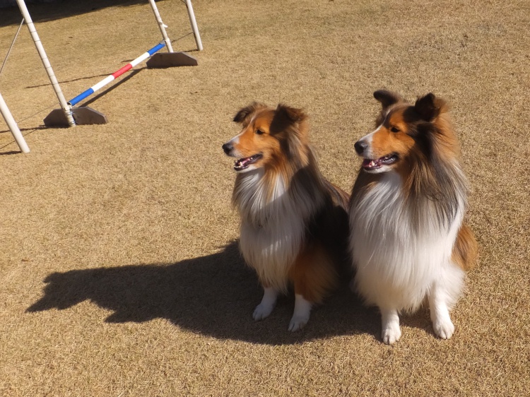 シェルティーのアイル君とオーストラリアンシェパードのクランちゃん^^