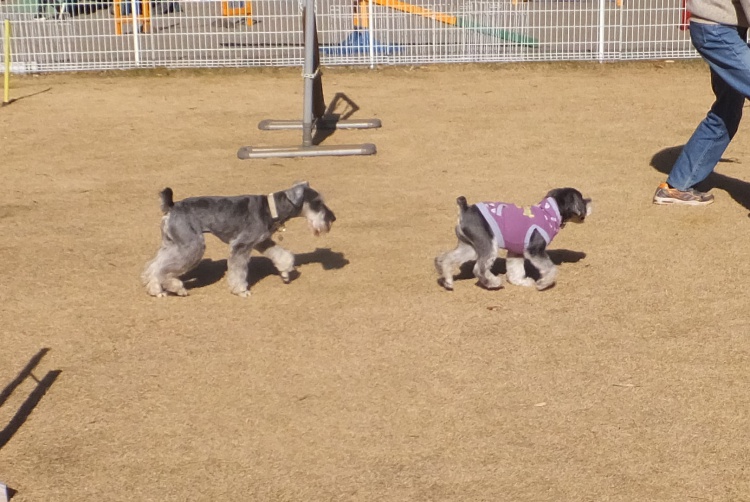 アジリティーの練習のあと、ティノちゃんとマメちゃん仲よく遊びました^^