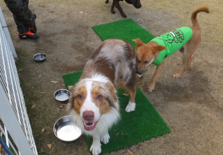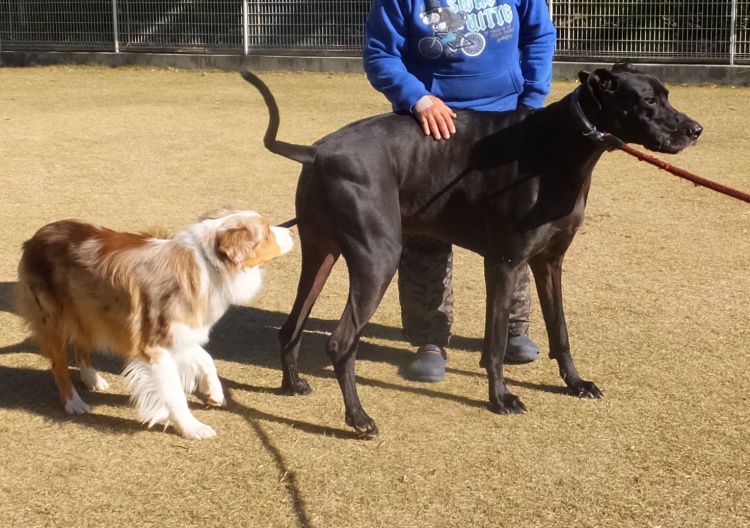 オーストラリアンシェパードのクランちゃん、最初はデンちゃんにビックリ(@@)