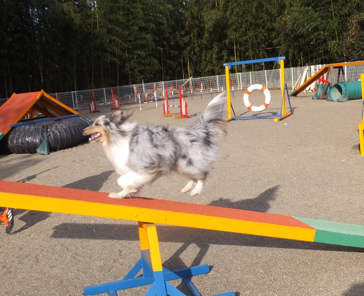 ボーダーコリーのアキちゃんはアジリティーの練習です^^
