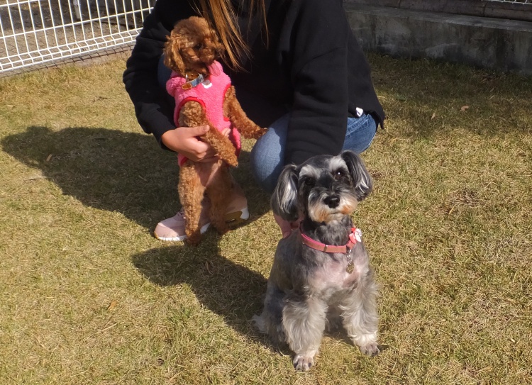 トイプードルのアズキちゃんとミディアムプードルのメリーちゃん^^