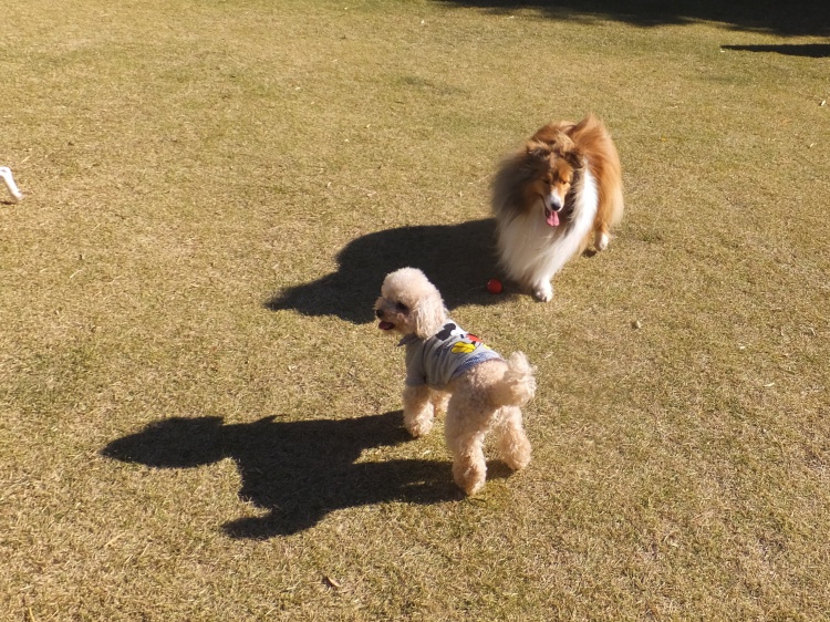 一番に来てくれたのはシェルティーのメリーちゃんと初めましてのお友達トイプーのロペちゃん^^