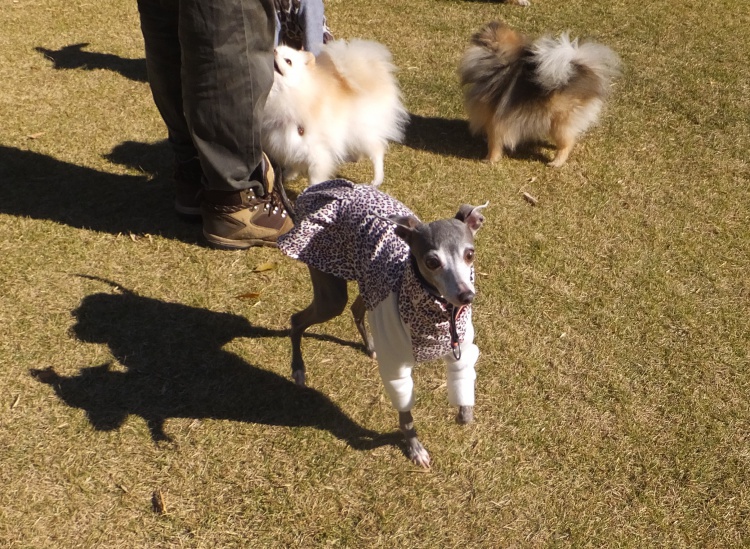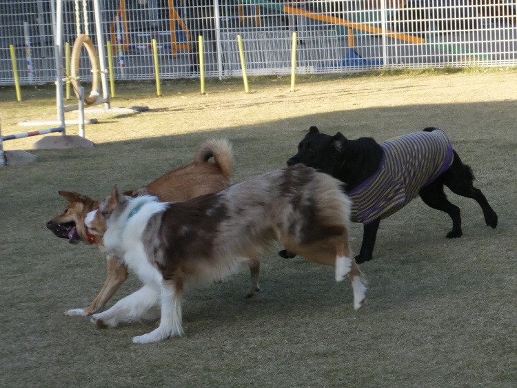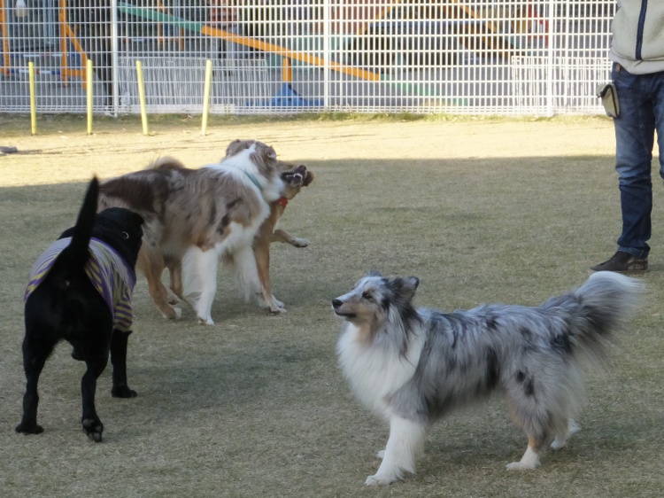午後3時過ぎになると冷たい風が吹いてきます。ワンコ達は元気ですが人間には寒い(><)