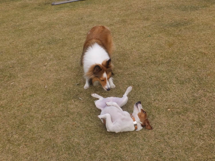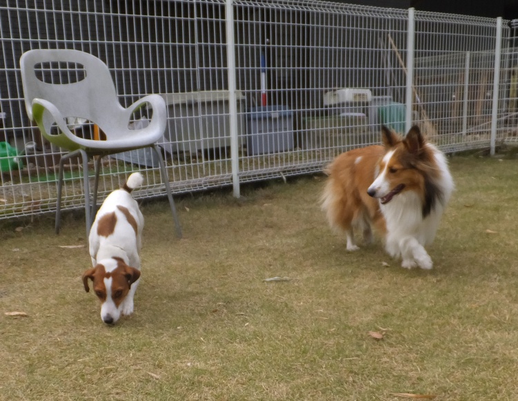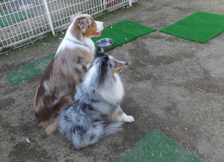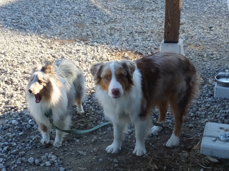 シェルティーのアイル君とオーストラリアンシェパードのクランちゃん^^