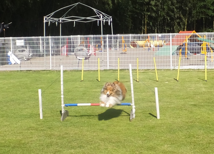 シェルティーのナンカちゃんフランちゃん、アジリティー練習です^^
