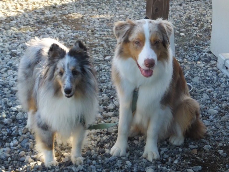 シェルティーのアイル君とオーストラリアンシェパードのクランちゃん^^