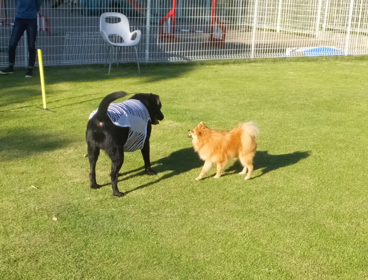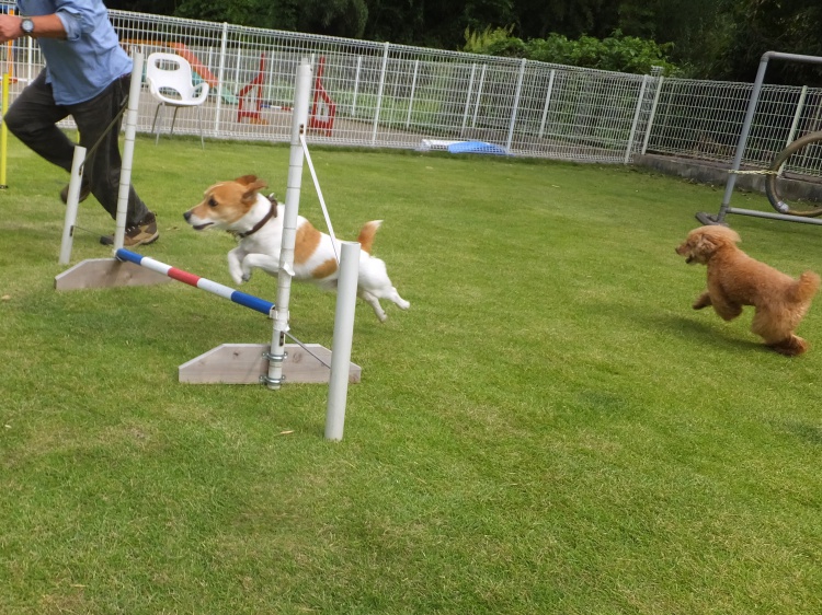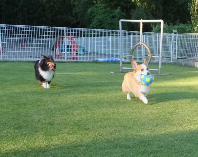 アジリティー練習の後、芝のフィールドで遊びました^^