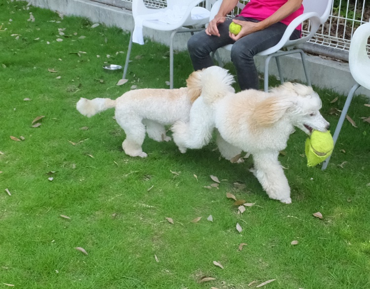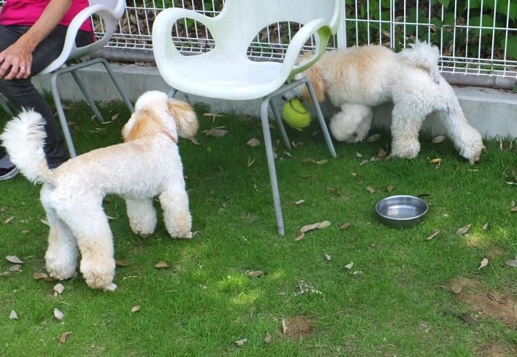 トイプードルのアズキちゃんとミディアムプードルのメリーちゃん^^