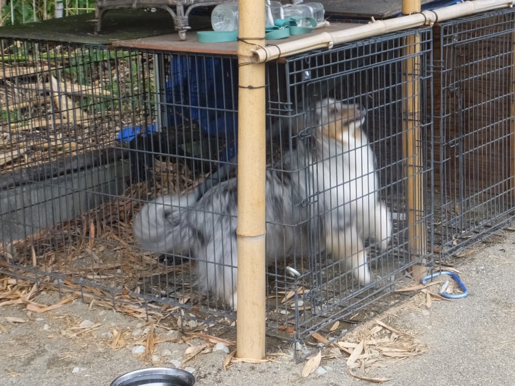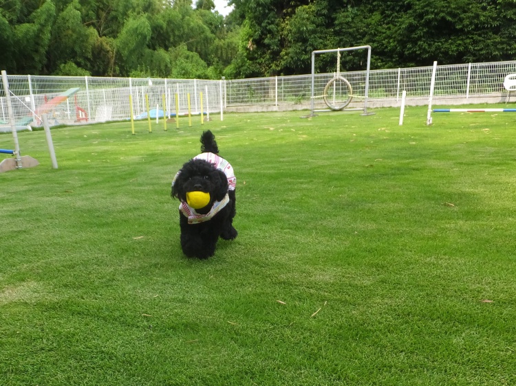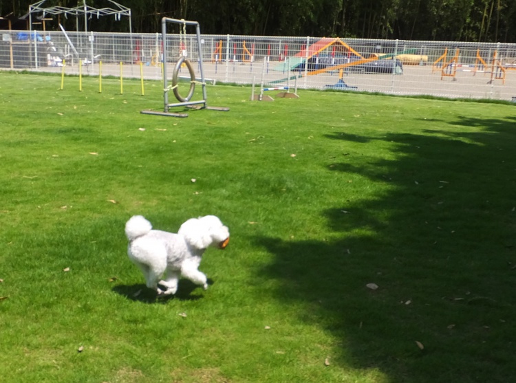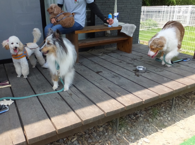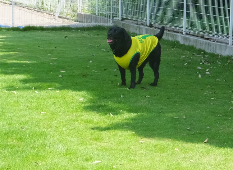 ドッグランでは竹林の影ができる午後3時頃からのご利用をお薦めします。黒い被毛のワンコは熱中症予防のためにも白などのウエアーを来て遊ぶようにした方が良いと思います。