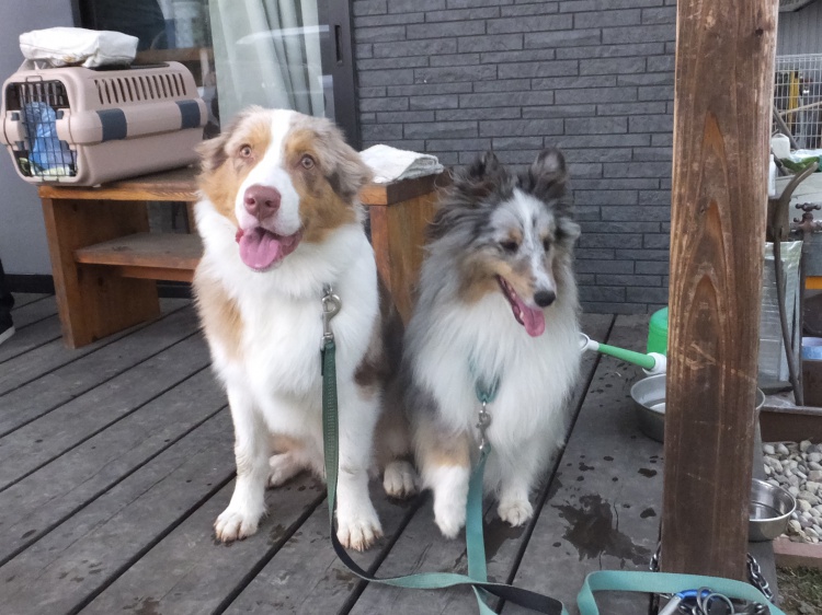 シェルティーのアイル君とオーストラリアンシェパードのクランちゃん^^