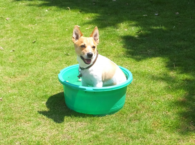 ジャックラッセルテリアのチャッピーちゃん^^今日もプール持参です。