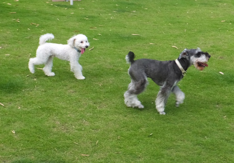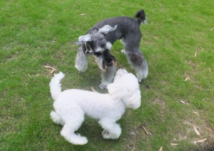 Mシュナのモグちゃんサボちゃん^^アジリティーの練習です。