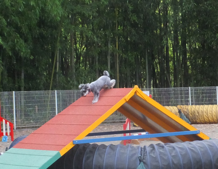スタンダードプードルのスダチちゃんはアジリティーの練習です^^