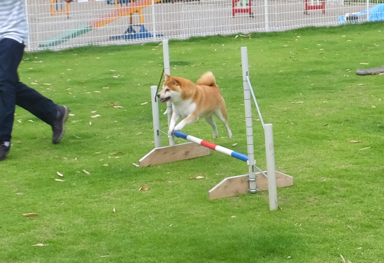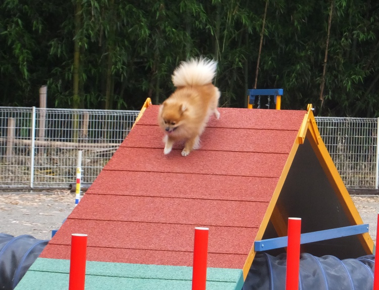 ポメラニアンのモコちゃん^^アジリティーの練習です^^