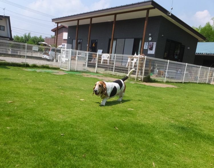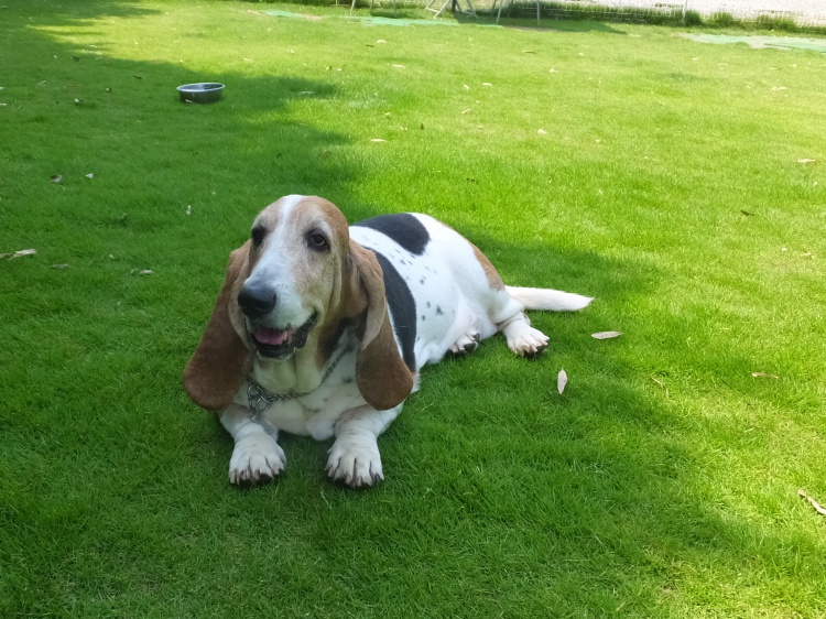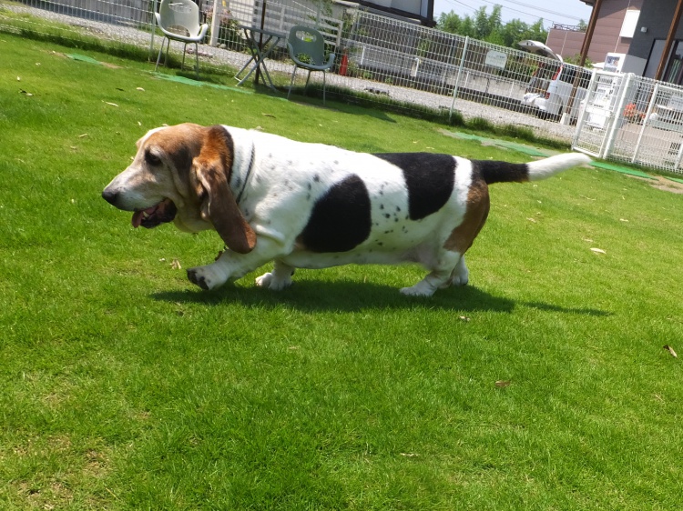 一番に来てくれたのはバゼットハウンドのマロンちゃん^^木陰が良いです。