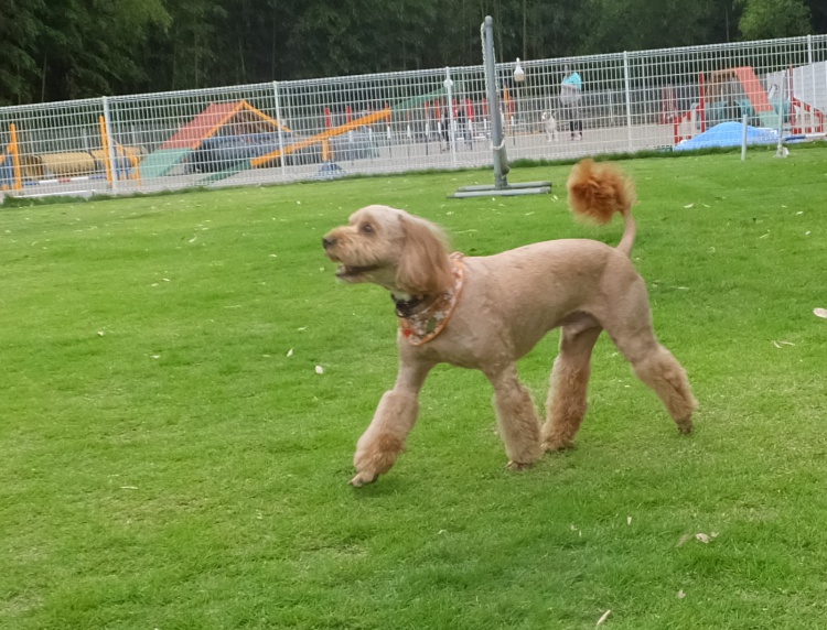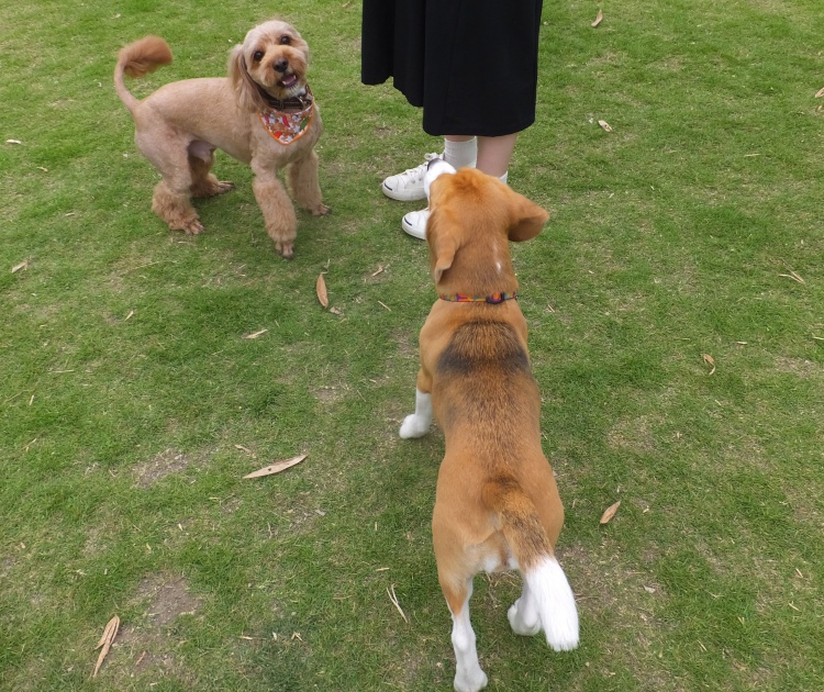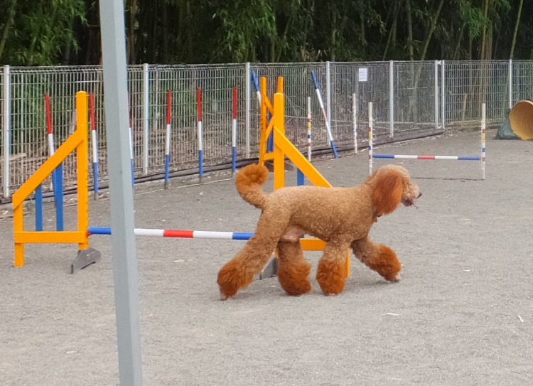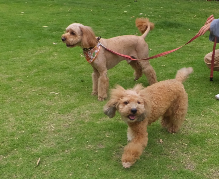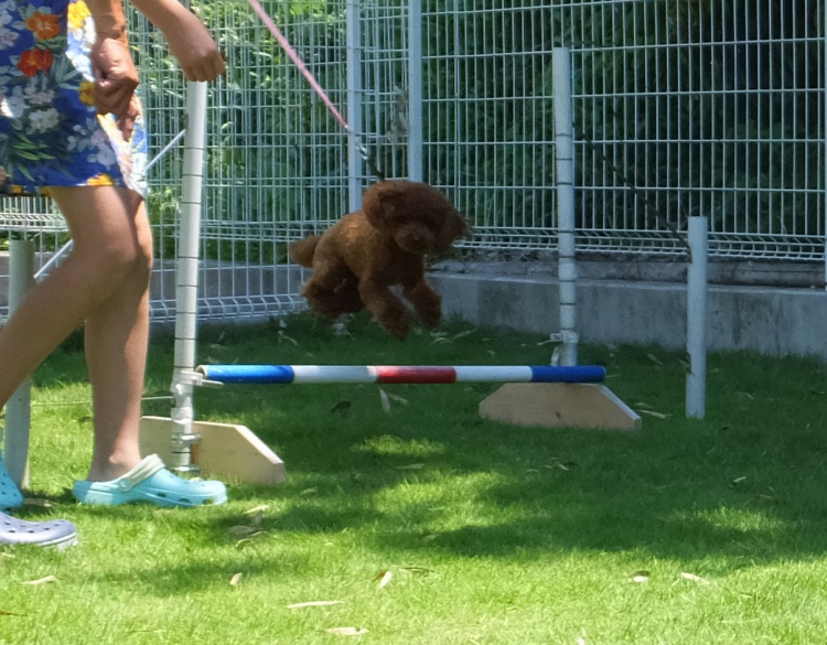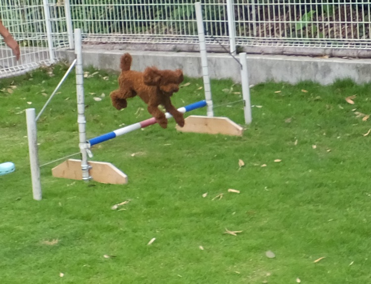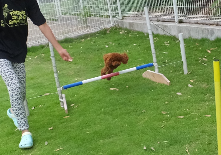トイプードルのハナちゃんも来て木陰でアジリティーの練習です^^