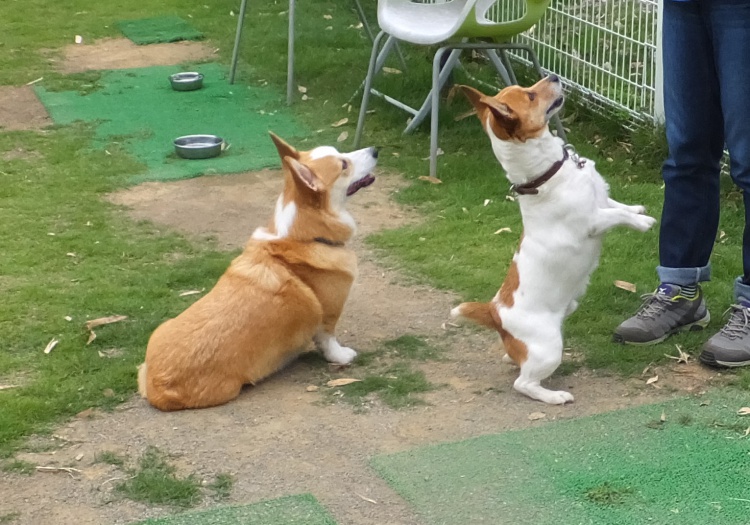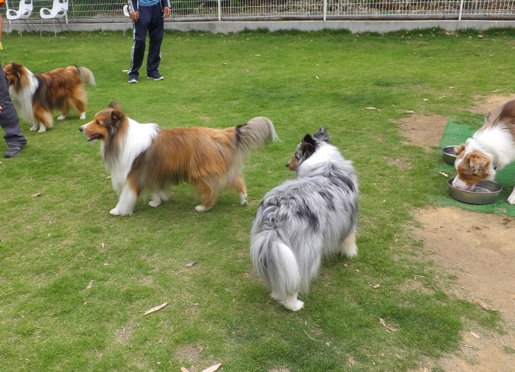 シェルティーのアイル君とオーストラリアンシェパードのクランちゃん^^