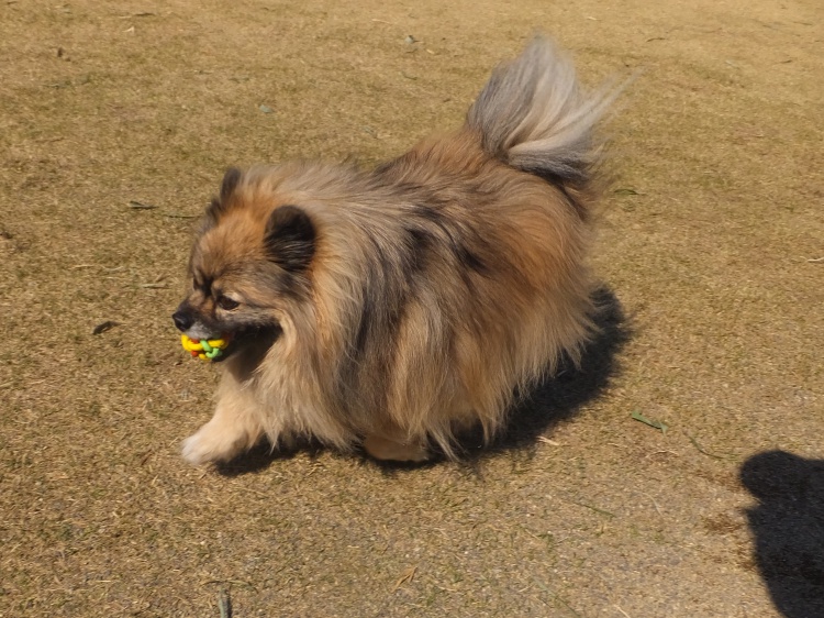 ポメラニアンのモコちゃんはママに抱っこの写真でした(__)