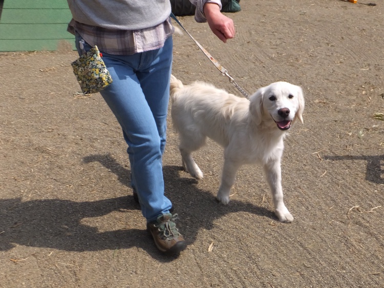 ゴールデンレトリバーのフレディーちゃんはしつけのお勉強です^^