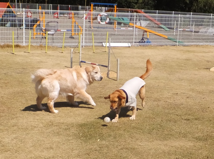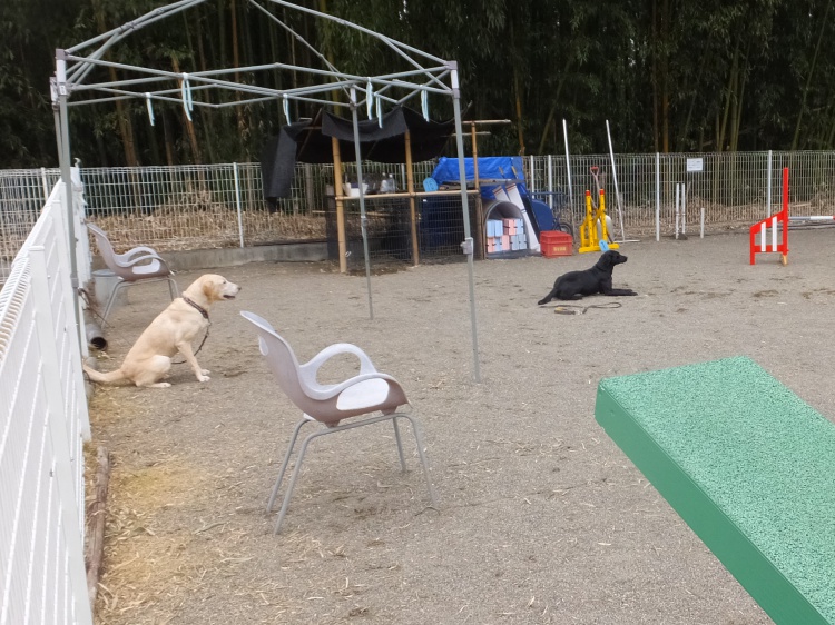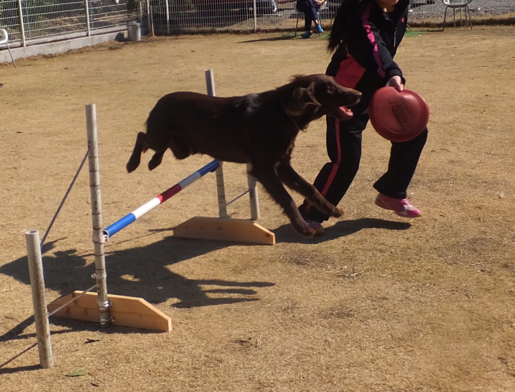 ラブラドールレトリバーのナッツちゃんハルちゃん姉妹^^アジリティーの練習です。