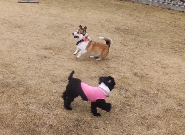 トイプードルのミルクちゃんはチャッピーちゃんに気に入られました^^