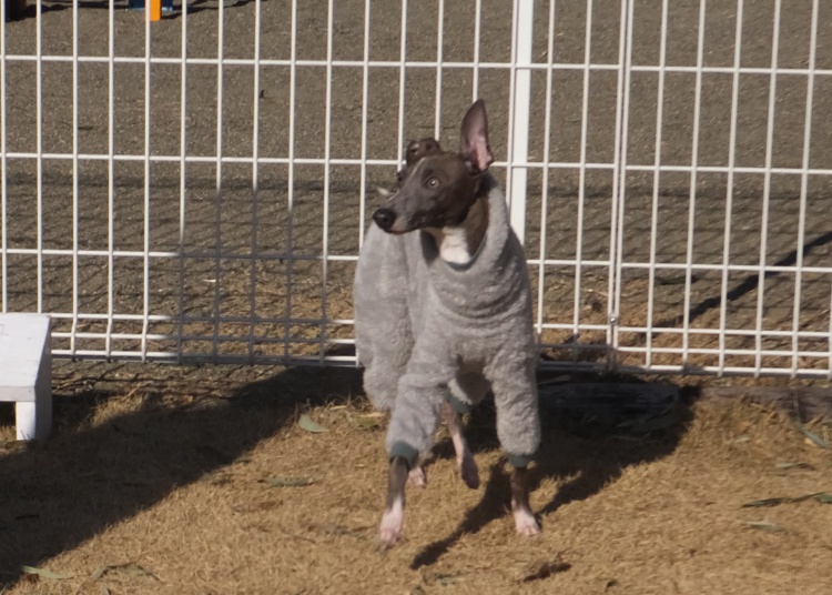 イタグレのイヴちゃんあったかウエアーで防寒バッチリ^^