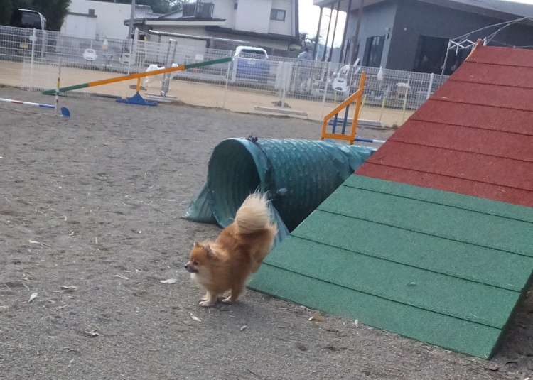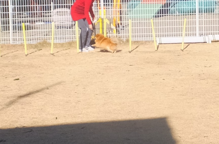ポメラニアンのモコちゃん、アジリティーの練習です^^