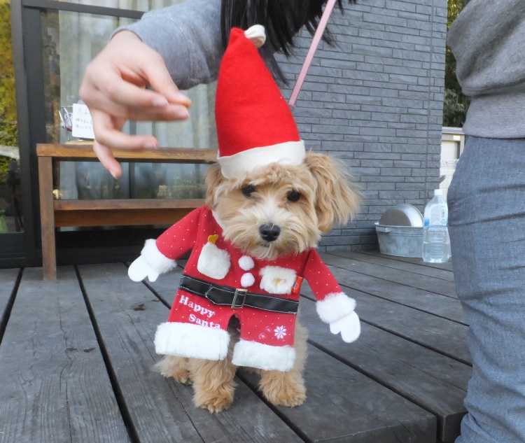 トイプードルのはなちゃんもサンタコスプレに挑戦^^