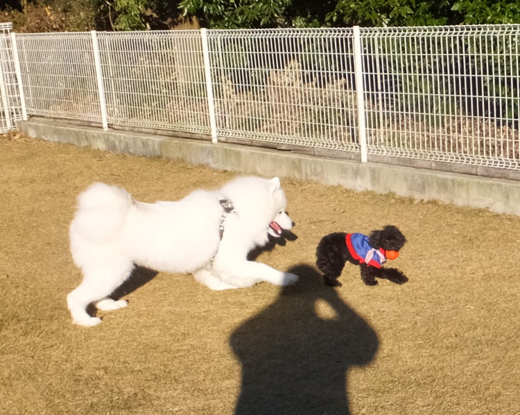 サモエドの大豆ちゃんはみんなと仲よくできます^^