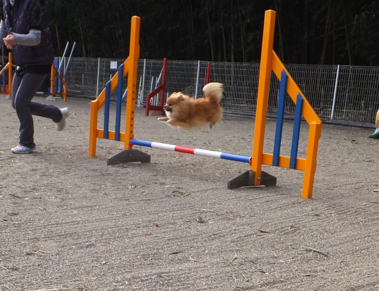 ポメラニアンのモコちゃんアジリティーの練習です^^