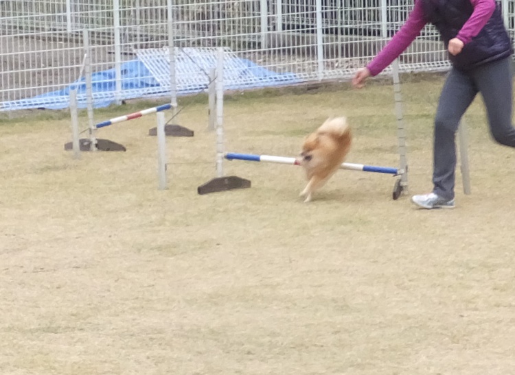 ポメラニアンのモコちゃん^^芝のフィールドでアジリティー^^