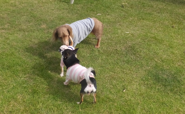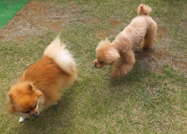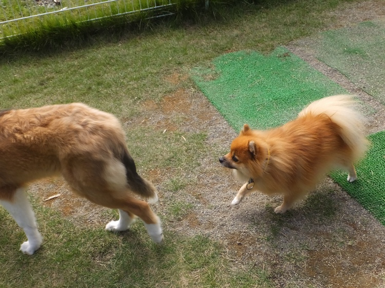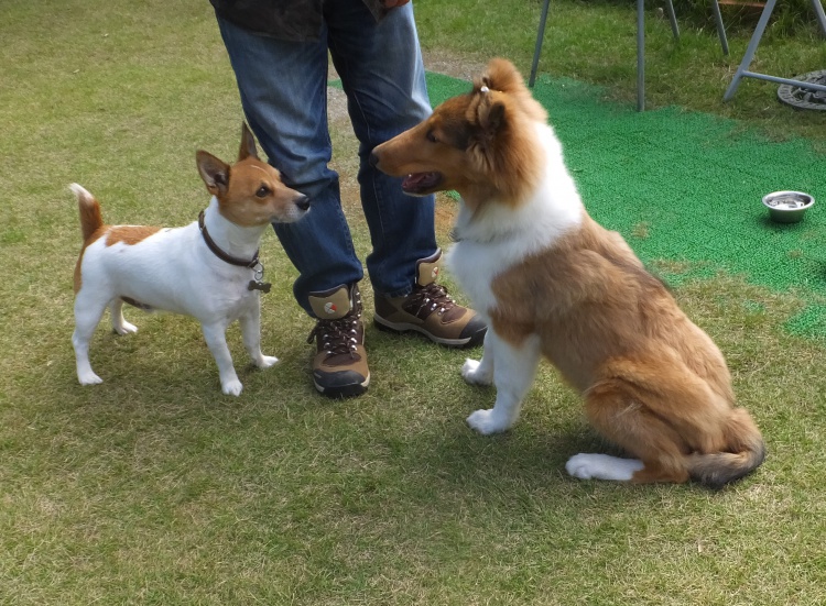 ジャックラッセルテリアのチャッピーちゃんはMシュナ兄弟の激しい遊びに・・・あきれ顔でした^^