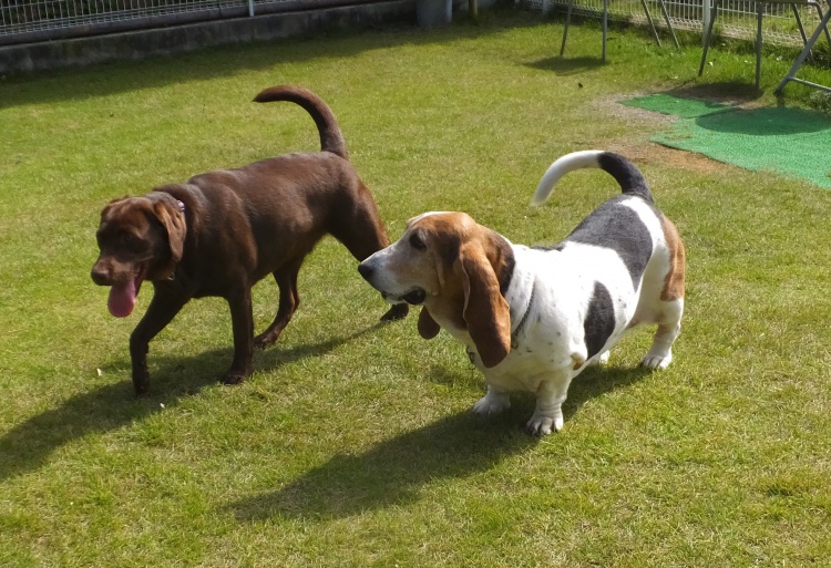 バゼットハウンドのマロンちゃんが来るとララちゃん大喜び^^仲良し♪