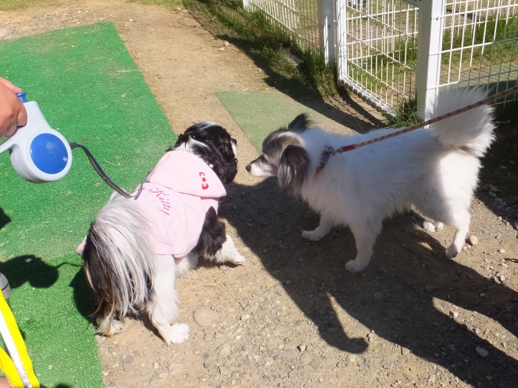 キャバリヤのあられちゃんはちょっとビビりながら大きな子と遊べました^^