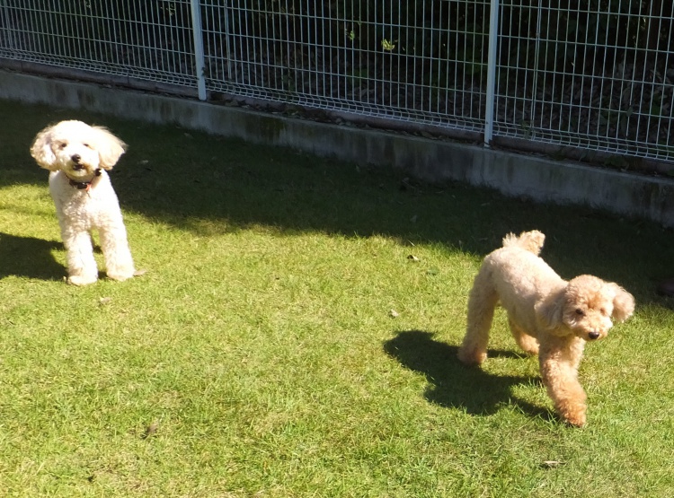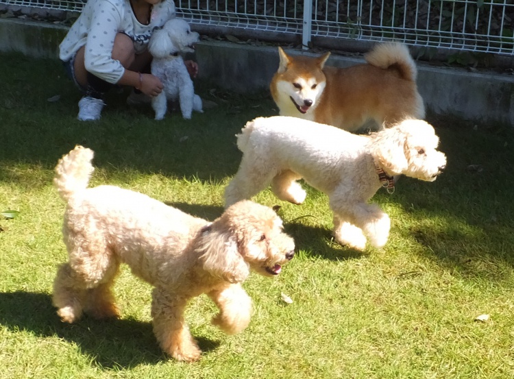 今日は日向では夏のような暑さでしたが、木陰は涼しくてワンコ達は元気元気(^^)