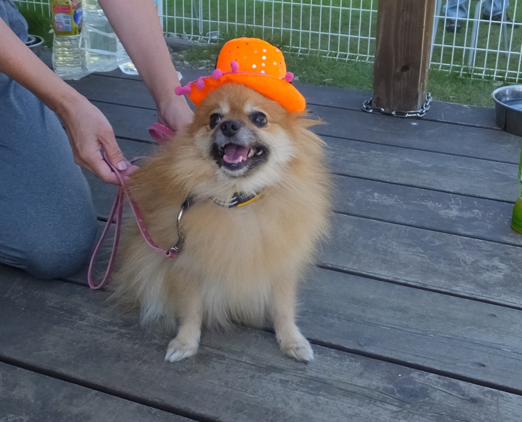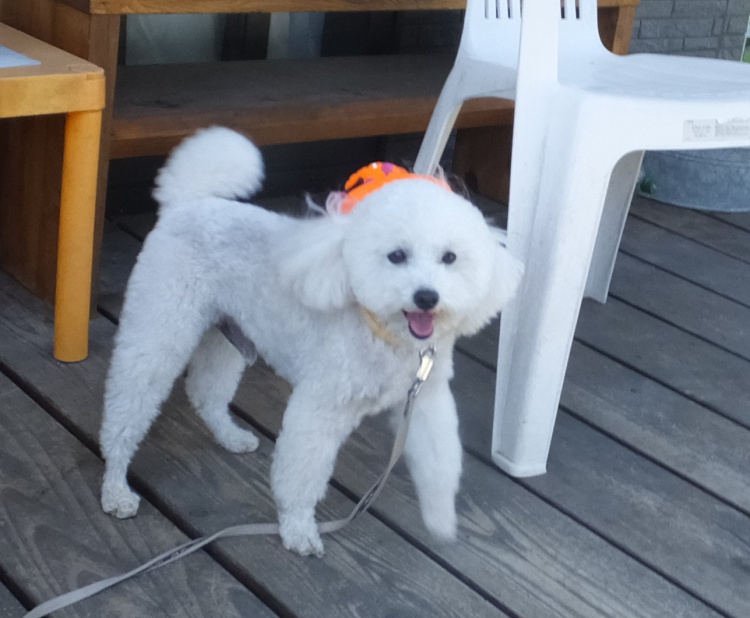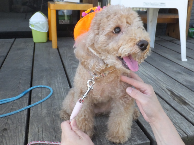 ワンコ達、ハロウィンの帽子に挑戦しました^^