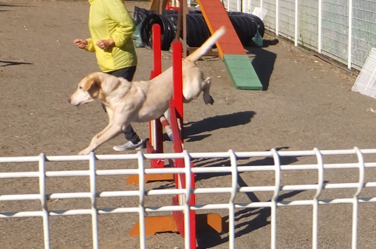 ラブラドールレドリバーのナッツちゃんハルちゃん姉妹はアジリティーの練習をしました。